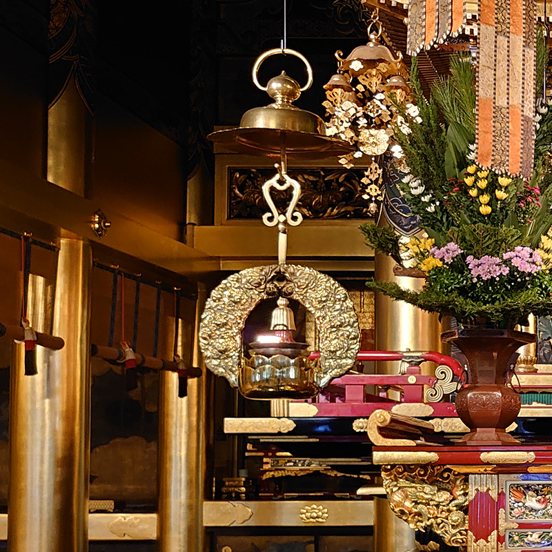 本堂のお内陣には輪灯という物があるのですが、そこに点す光を人工物にしていることが多いんです。うちで使っているのは若林佛具製作所さんの燈明ゆらぎ(ウエッジ球タイプ)。