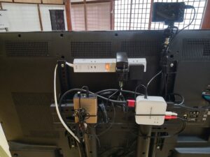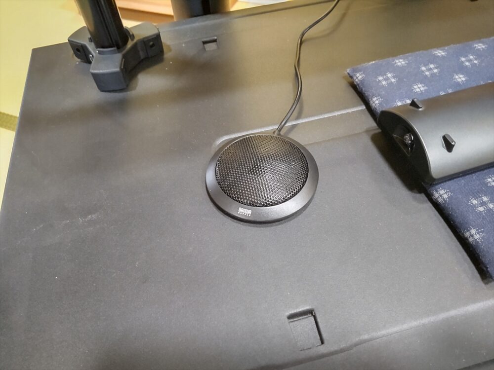 そして、テレビモニタに写るオンライン参拝者とビデオチャットできるように、マイクを追加で設置。マイクはサンワダイレクトさんの400-MC008を使用。そして、audio-technicaさんのマイクロフォンアンプ(AT-MA2)